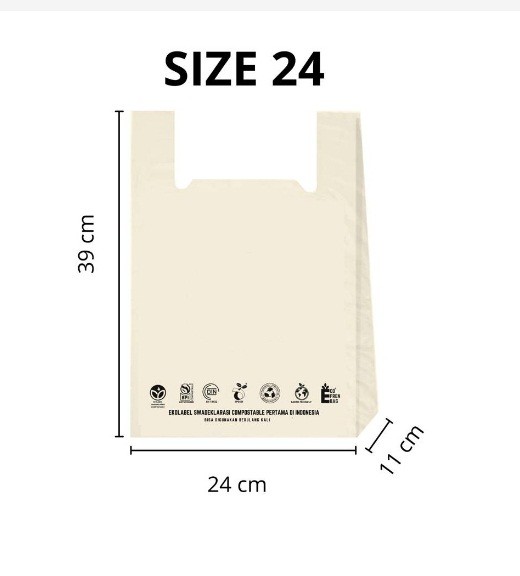 HARGA SATUANKantong ramah lingkungan yang berbahan dasar dari jagung dan BEBAS dari kandungan plastik- Biodegradable dan Compostable dalam 6-12 bulan - Tidak berbau dan non-toxin- Aman untuk minuman dingin dan frozen food - Tidak mudah sobek - Bisa digunakan berulang kali sampai terurai- Warna: Putih Natural- Isi 1 pc- Kapasitas: 4-5kg- Ukuran: Lebar (kuping)/ (tanpa kuping) x panjang x ketebalan S: 35/24 x x 39 x 35 mikronCara Penyimpanan: 1.Hindari kontak langsung sinar matahari 2.Simpan dalam suhu rua