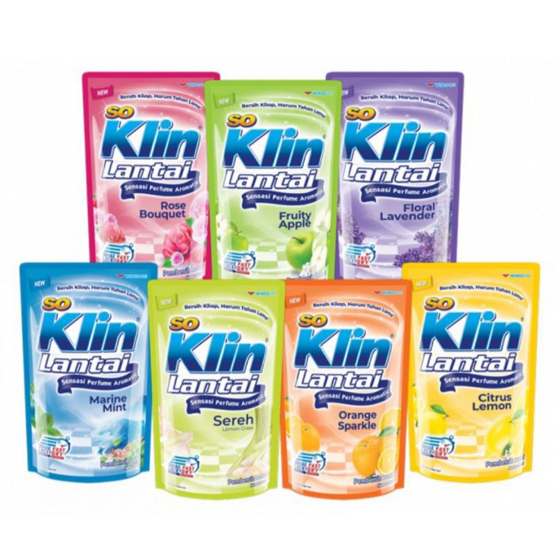 So Klin Lantai 780ml1. Marine Mint2. Orange Sparkle3. Rose Bouquet4. Fruit Apple5. Floral Lavender6. Lemon7.