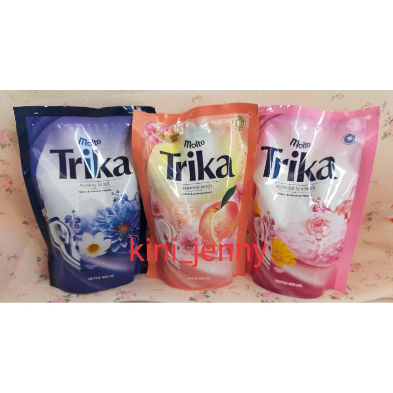 MOLTO TRIKA JAPANESE PEACH dapat melicinkan dan merapikan pakaian sehingga pekerjaan menyetrika menjadi cepat dan mudah. Dengan sentuhan keharuman dari perpaduan buah peach Jepang dan bunga Sakura. Nikmati saat - saat yang menyenangkan dengan manisnya keharuman bunga yang memukau di pakaian.MOLTO TRIKA FLOWER SHOWER dapat melicinkan dan merapikan pakaian sehingga pekerjaan menyetrika menjadi cepat dan mudah. Dengan sentuhan keharuman dari perpaduan mawar dan lily. Nikmati saat - saat yang menyenangkan dengan manisnya keharuman bunga yang memukau di pakaian. ATURAN PAKAI :1. Tuang isi kemasan ke dalam botol spray kosong2. Semprotkan cairan MOLTO TRIKA secara merata dari jarak kurang lebih 25 cm. Kemudian setrika seperti biasa.Netto : 400 MLREADY STOCK ☺️ HAPPY SHOPP