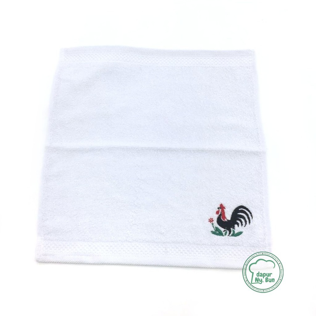 DeskripsiBahan: handukMotif: ayam jagoWarna: PutihUkuran 32 x 30cmHarga satu sapu t