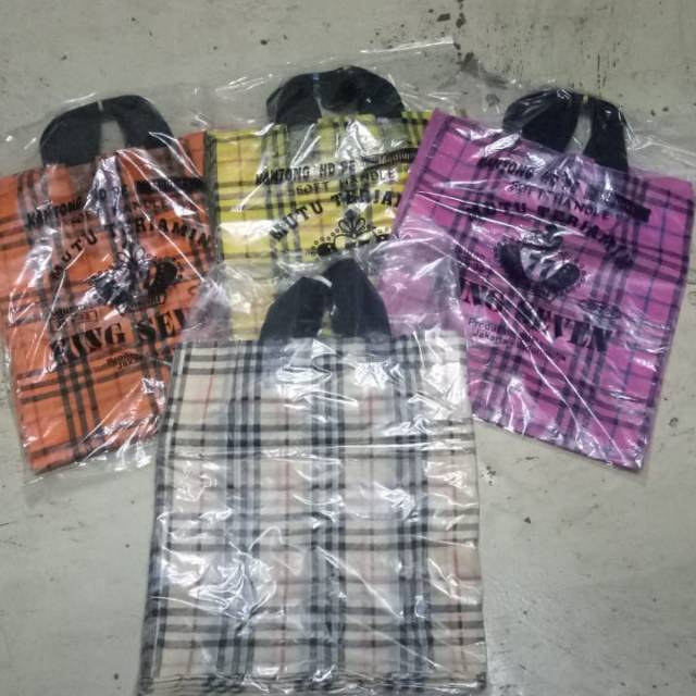 Grosir Perlengkapan di Kabupaten Klaten Hd Pe Uk 22x26 & 30x32 Plastik Soft Handle Burberry Isi 50lbr Kantong Plastik Tenteng dari Juragan Hoki Shop Kota Jakarta Utara