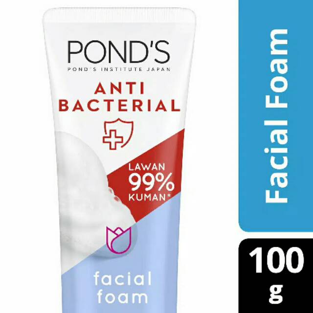 Yuk gunakan BARU Pond's Anti Bacterial Facial Foam! Microfoam dengan kekuatan TT-Protect Technology, bahan anti bakteri yang teruji oleh dermatologis untuk melawan 99% kuman* dan memperkuat daya tahan alami kulit terhadap kuman**. Lembut di kulit. cocok untuk semua jenis kulit. Dapatakan hasil kulit bersih, glowing yang sehatTeruji oleh dermatologis*berdasarkan uji laboratorium terhadap E.Coli^berdasarkan uji klinis, dengan penggunaan teraturShelf Life: 1080 daysBPOM: NA181712