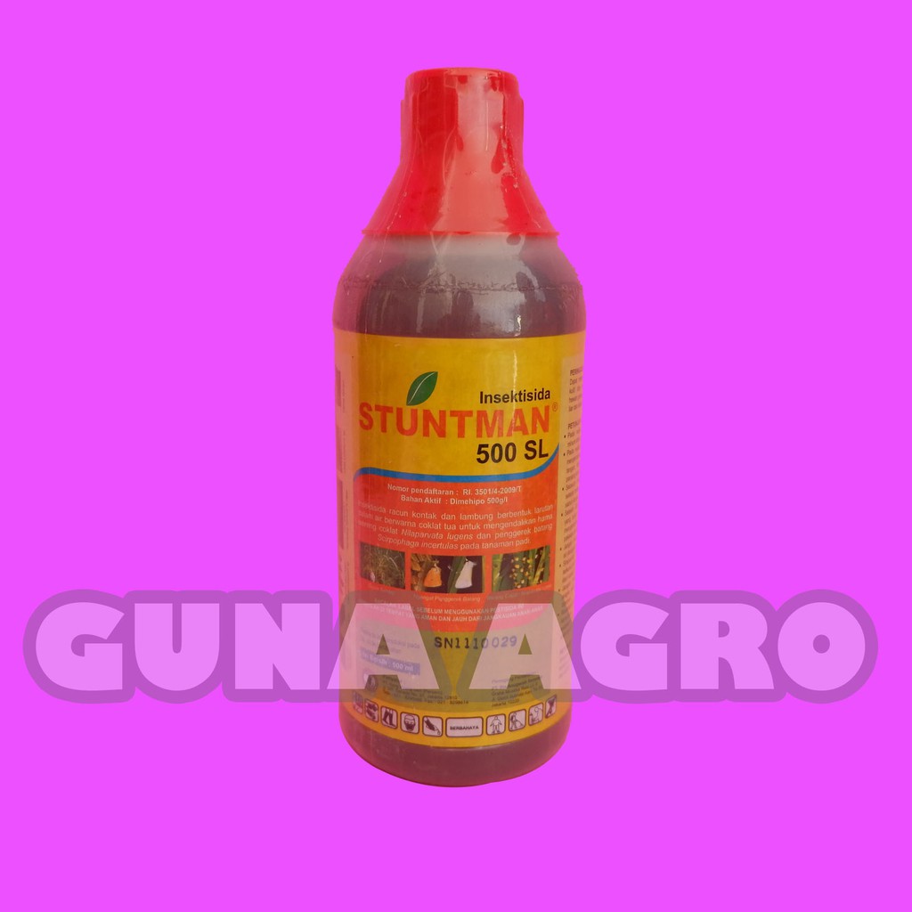 Nama Produk :Stuntman 500 SL 500 mlBahan aktif :Dimehipo (dimehypo) : 500 g/lDeskripsi :Insektisida racun kontak dan lambung berbentuk pekatan yang dapat diemulsikanCara Pemakaian :Padi sawah : Penggerek batang kuning Scirpophaga incertulas (Penyemprotan volume tinggi: 1,5 ml/l)Padi sawah : wereng coklat Nilaparvata lugens (Penyemprotan volume tinggi : 0,5 ml/l)Perusahaan :Belum ada